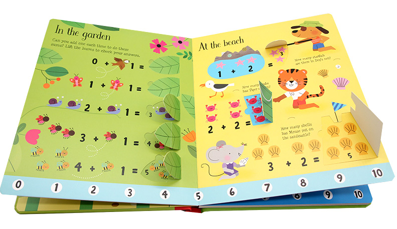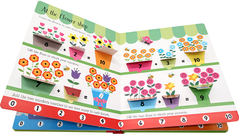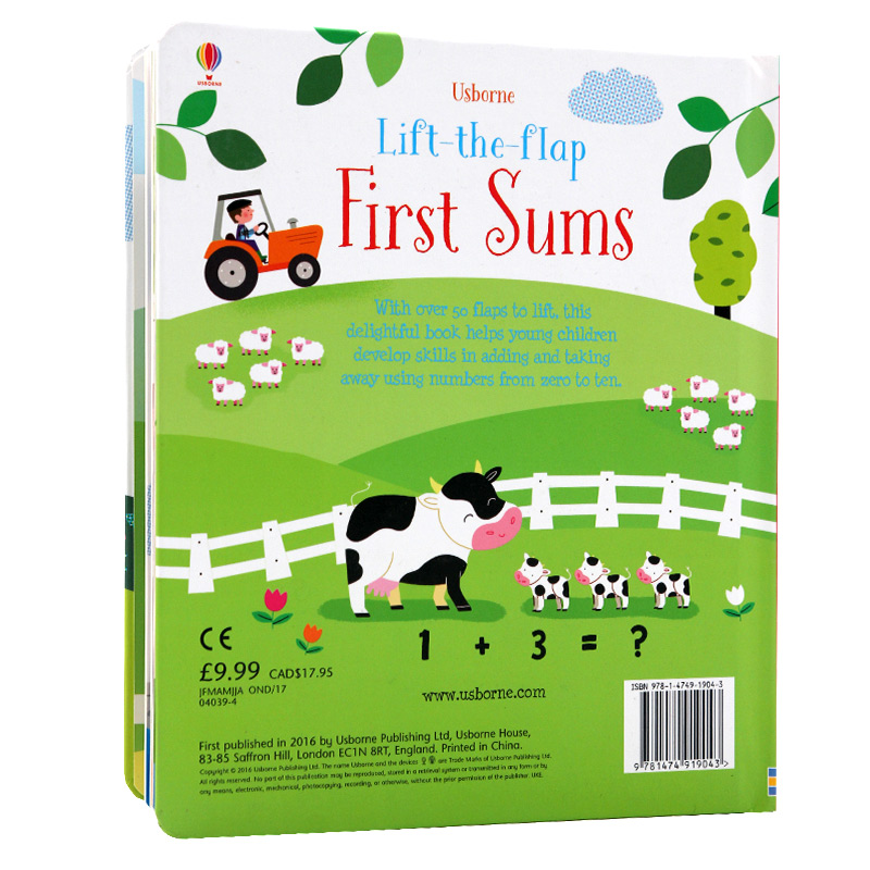 Usborne 宝宝学习英文单词幼儿早教益智 纸板翻翻书 Flap First The 学习加数 Lift 尤斯伯恩图书 英文原版 Sums 数学启蒙绘本
