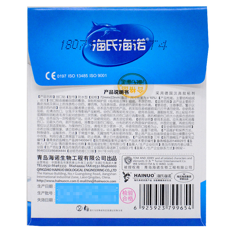 海氏海诺防水透气创口贴医用防磨脚后跟伤口洗澡防水型创可贴