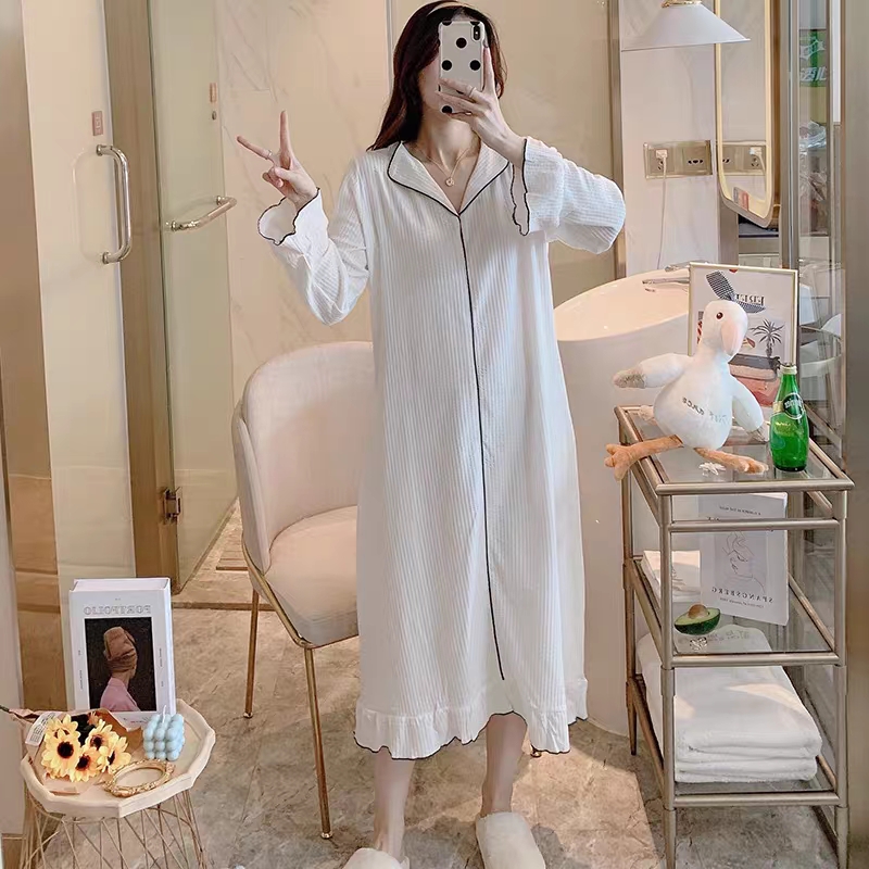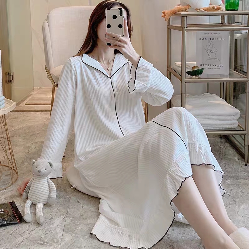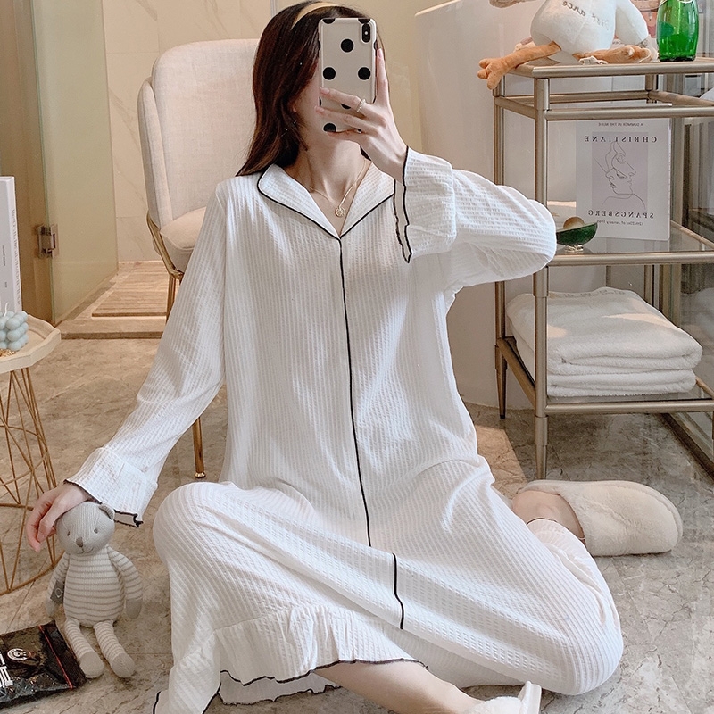 睡裙女春秋季 简约白色纯棉性感睡衣秋冬天长裙家居服 2025年新款