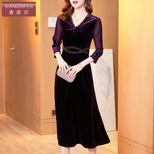 钉珠连衣裙 优雅假两件长袖 珂莱蒂尔2025秋新款 法式