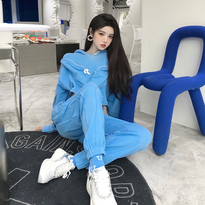 运动服卫衣两件套装 女设计感小众潮牌炸街休闲时尚 2022年新款 春装