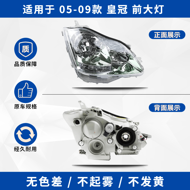 18年款 适配05 12.3代丰田新老皇冠前大灯照明灯罩壳总成