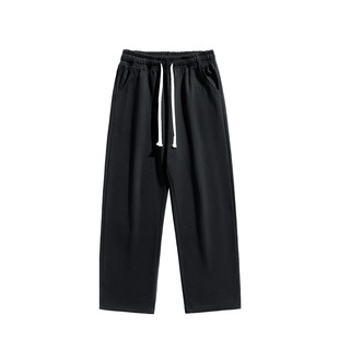 宽松阔腿百搭休闲裤 潮流垂感运动长裤 男秋季 V37重磅黑色直筒卫裤