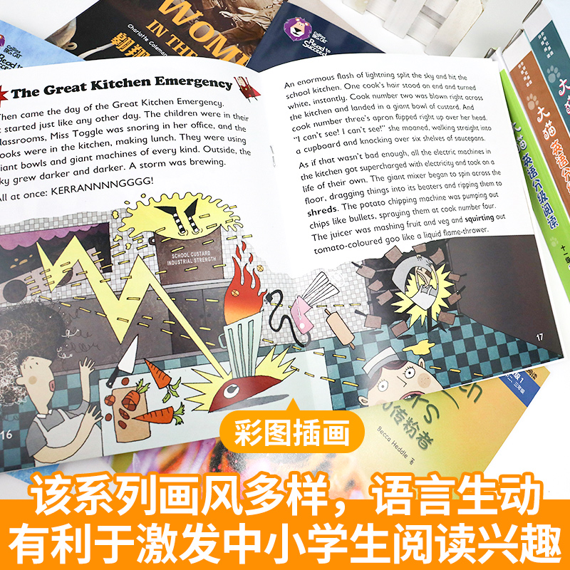14岁少儿儿童英语启蒙读物英文绘本故事书 初中生七八九年级英语课外阅读书籍12 大猫英语分级阅读初中一二三年级扫码 听音频点读版