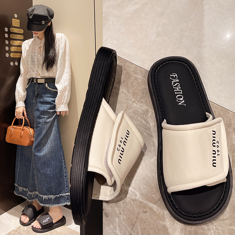 沙滩一字拖配裙子凉拖34码 超轻软底孕妇平底拖鞋 女夏外穿2025新款