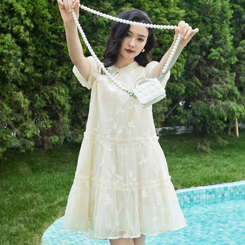 女夏季 连衣裙2024新款 气质显瘦中长裙子 国风短袖 鲁思蒂刺绣新中式