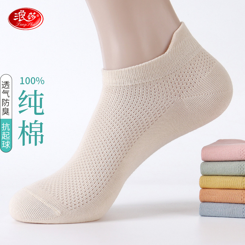 纯棉提尔不掉跟防滑短袜浅口隐形袜夏天 薄款 浪莎袜子女款 船袜夏季
