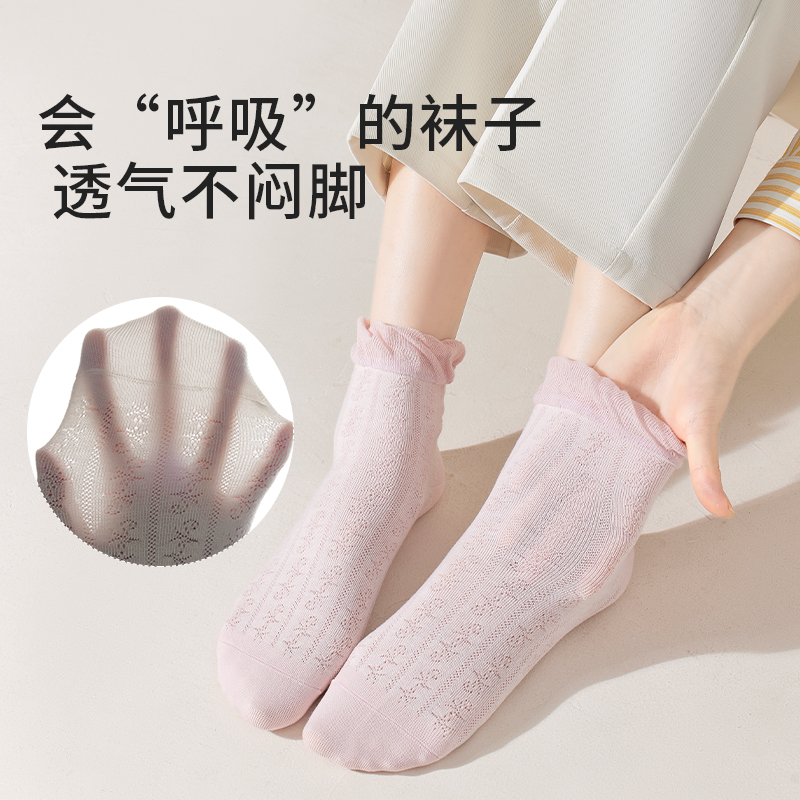 健将女士袜子女款 春夏纯棉全棉中筒袜透气抑菌防臭无骨袜 2025新款