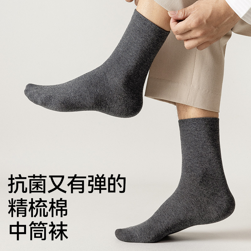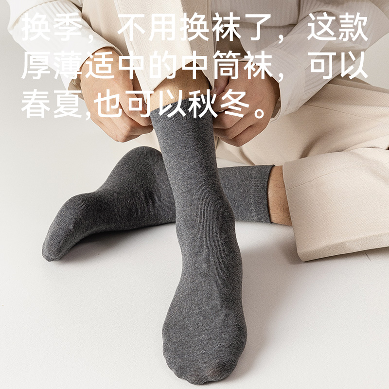 防臭长袜黑色商务男袜 抗菌夏季 罗蒙袜子男士 中筒纯棉吸汗透气薄款