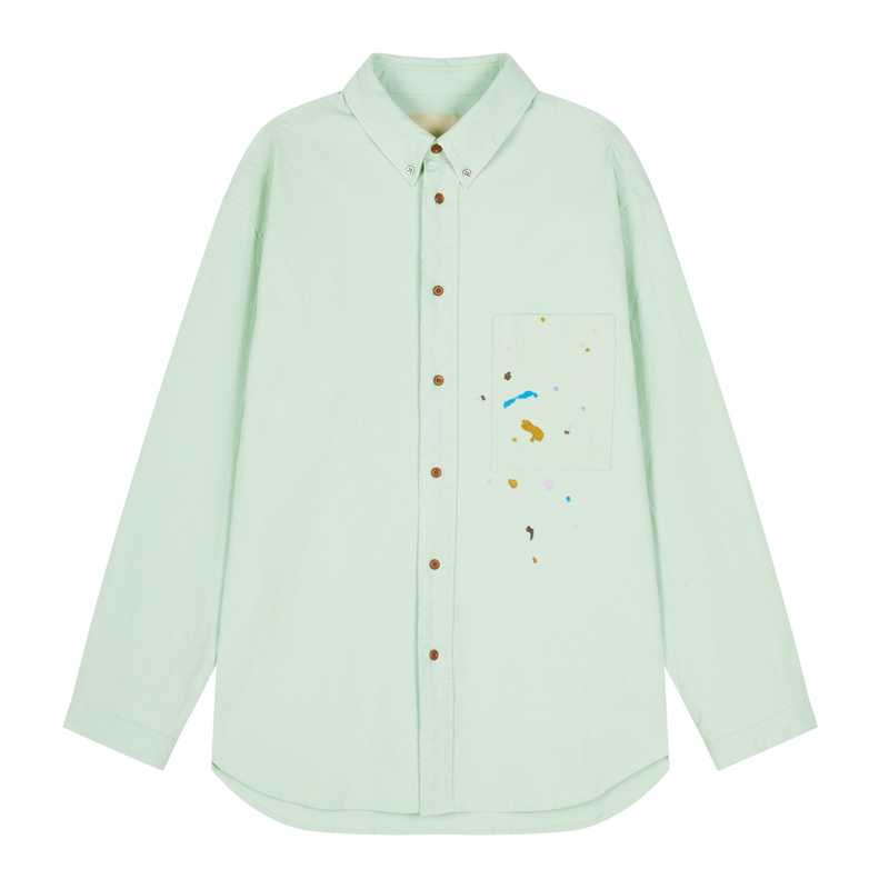 休闲宽松刺绣格纹翻领衬衫 简约长袖 上衣 Weenie小熊男装 Teenie