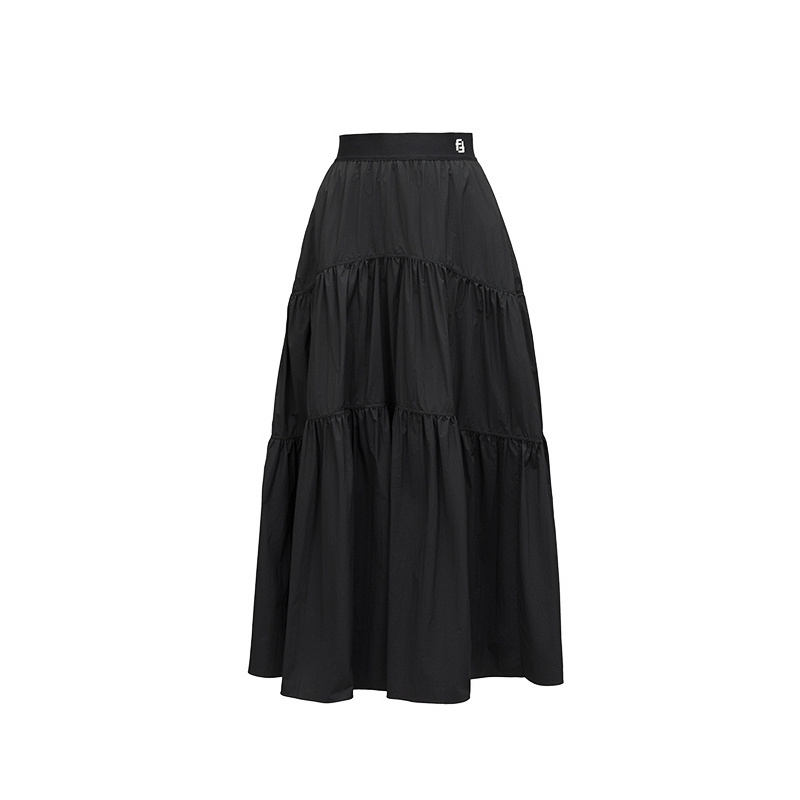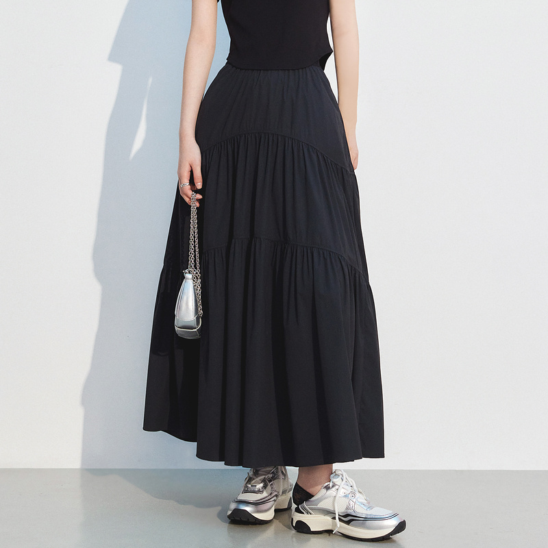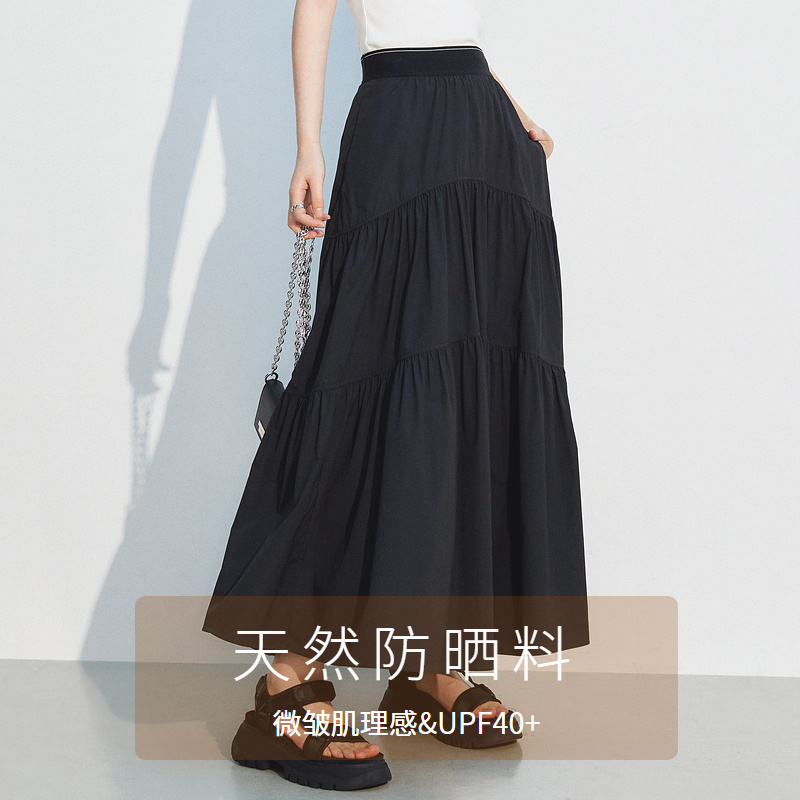 FF仿佛夏季 百褶裙 黑色半身裙女垂坠感a字高腰中长款