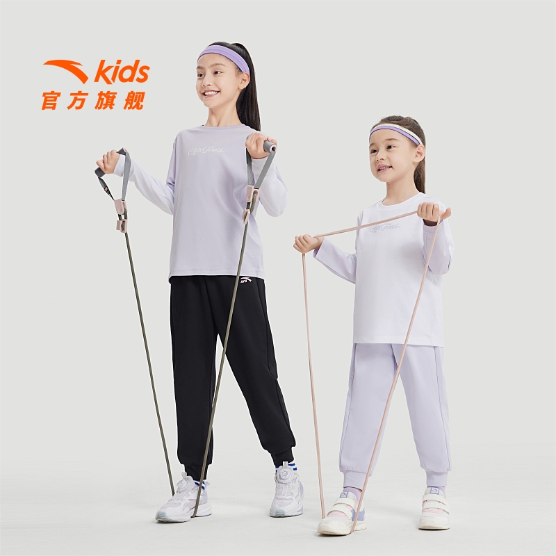 子儿童黑色长裤 童装 2025新款 宝宝卫裤 中大童运动休闲裤 安踏女童裤