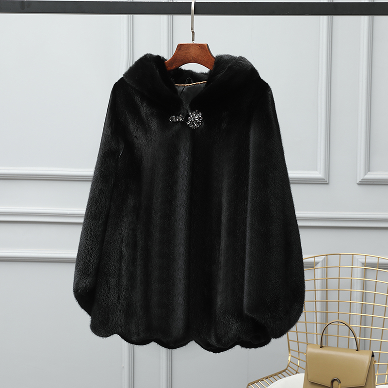 水貂皮毛外套冬季 带帽皮草外套海宁裘皮百搭 大衣女整貂新款