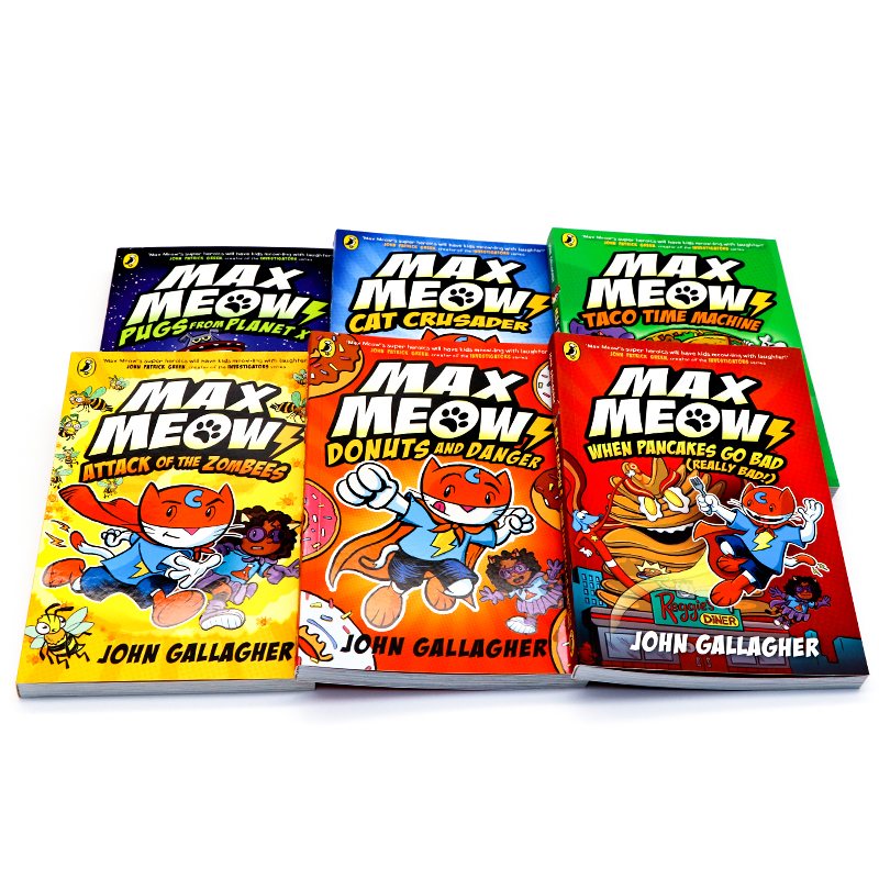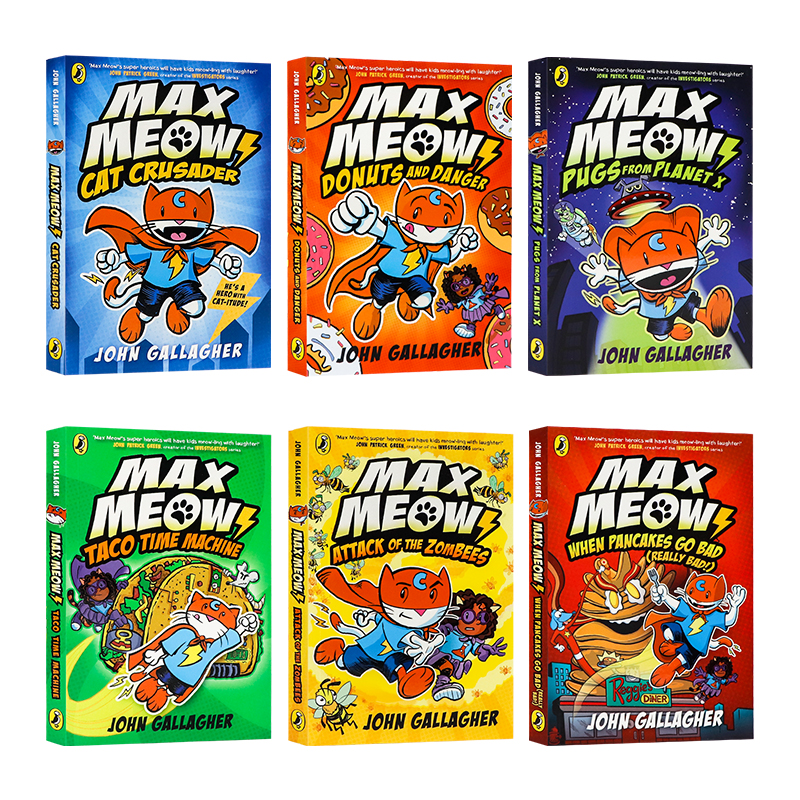 Meow 爆笑英文全彩漫画小说小学英文课外读物儿童漫画故事书奇幻冒险图书可搭dog 马克思猫6册英文原版 man 6册 Max