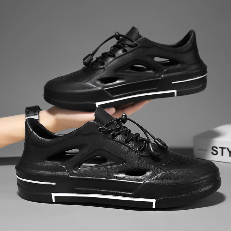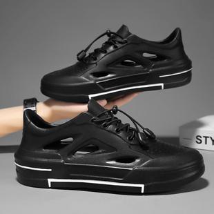 夏天户外一脚蹬洞洞鞋 小白鞋 隐形内增高6cm厚底凉鞋 2024新款 男款