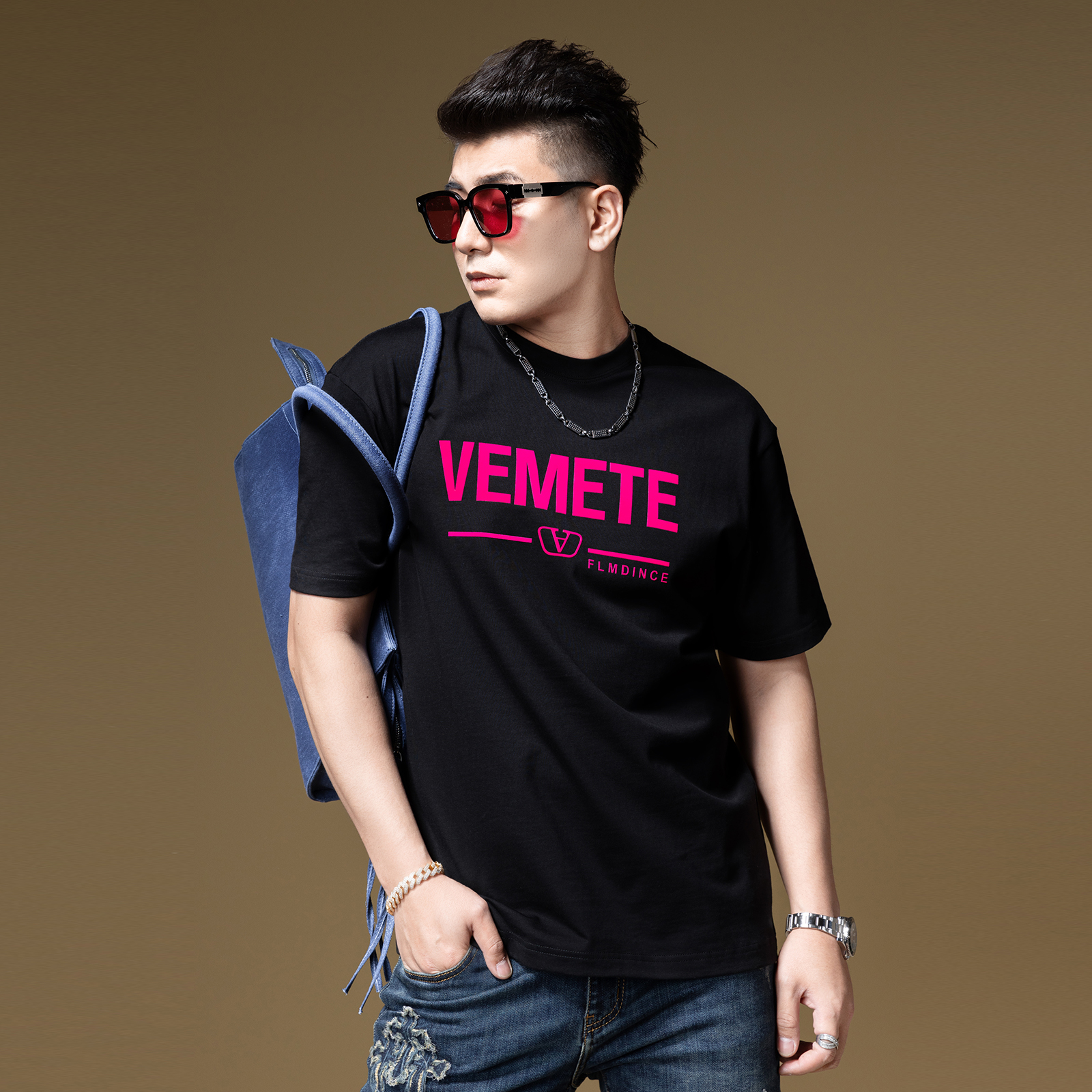 打底衫 BM欧美潮牌t恤美式 夏季 男款 复古字母植绒印花宽松纯棉短袖