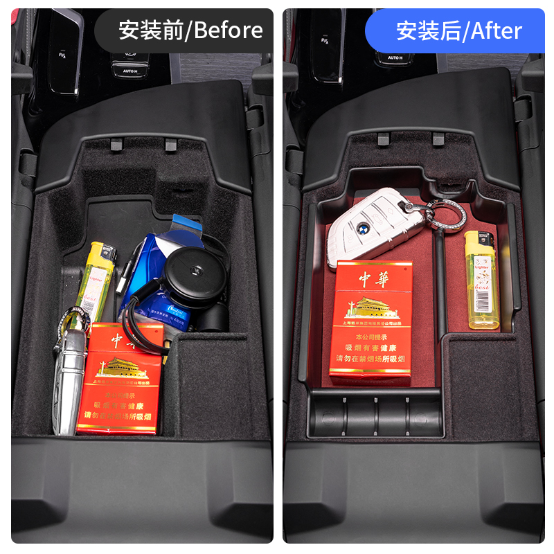 适用宝马5系3系X1iX3X4X5L中控置物储物盒扶手箱收纳车内装 饰用品