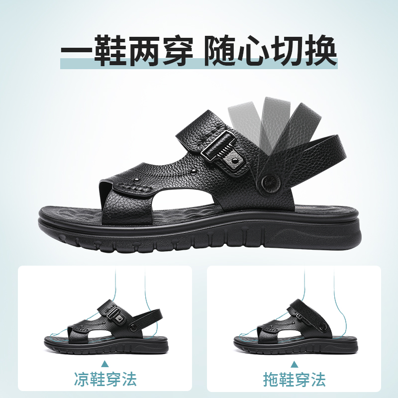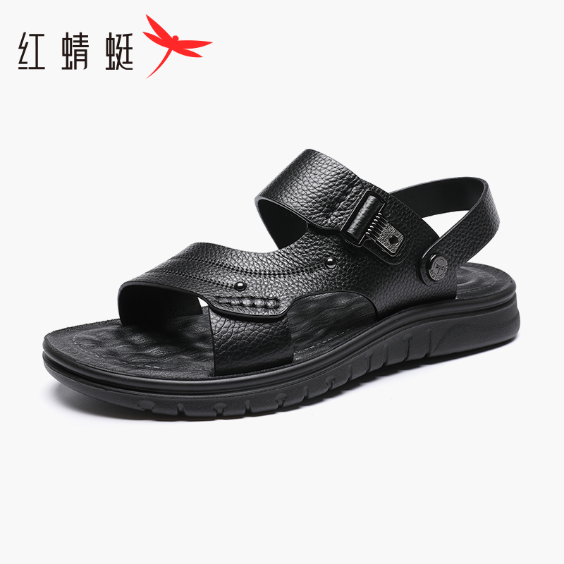 透气露趾沙滩鞋 新款 男士 运动凉鞋 红蜻蜓男鞋 牛皮革休闲两穿鞋 夏季