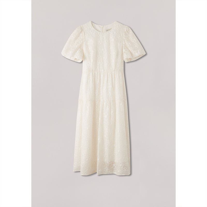 圆领连衣裙13465302 优雅通勤腰带收腰泡泡袖 佐丹奴裙子女夏季 新款