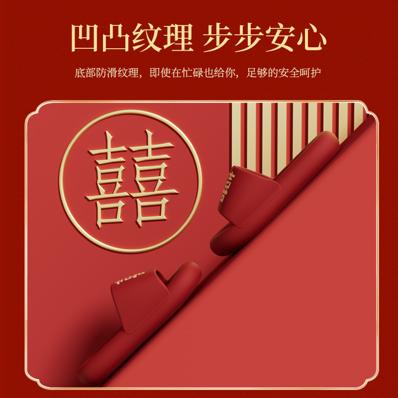 女 喜字婚庆婚礼新娘新婚陪嫁凉拖鞋 结婚拖鞋 喜庆红色一对情侣夏季