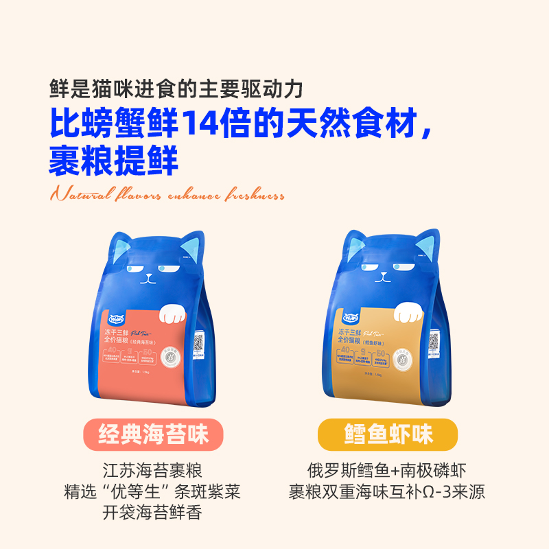 WoWo喔喔猫粮冻干三鲜全价营养猫粮试吃装 享免单 回购正装