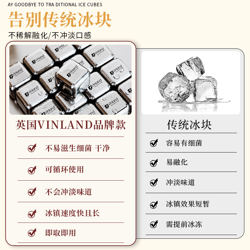 日本316不锈钢冰块食品级威士忌制冰冰格冻冰石模具金属酒石冰粒