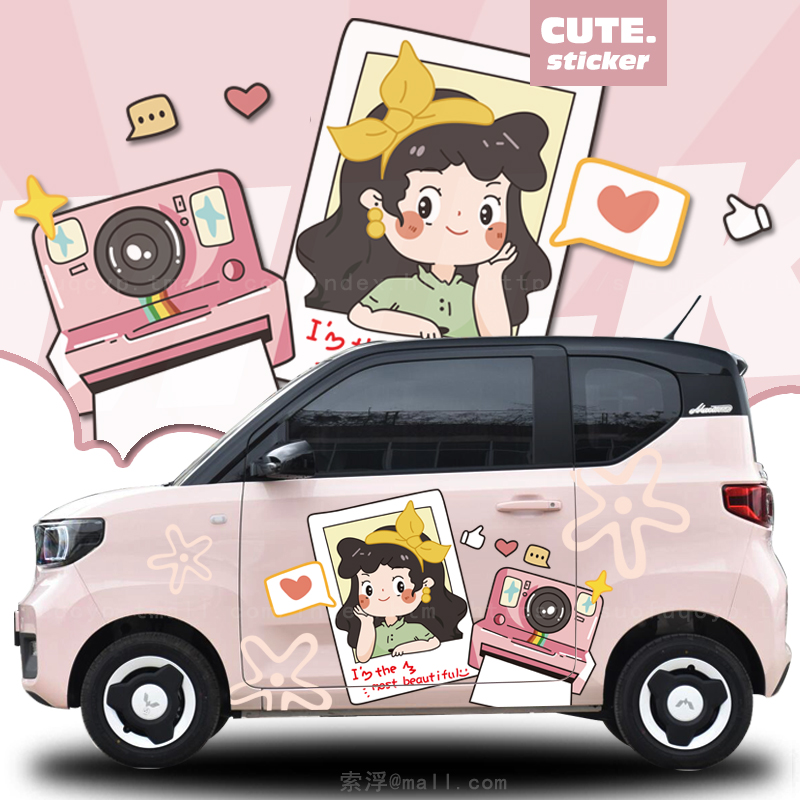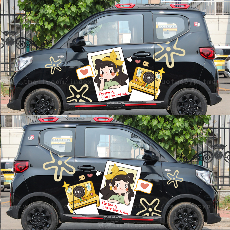五菱宏光miniev车贴迷你马卡龙GB照相女孩奇瑞QQ冰淇淋改装 饰贴纸