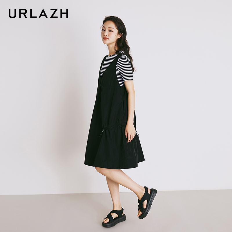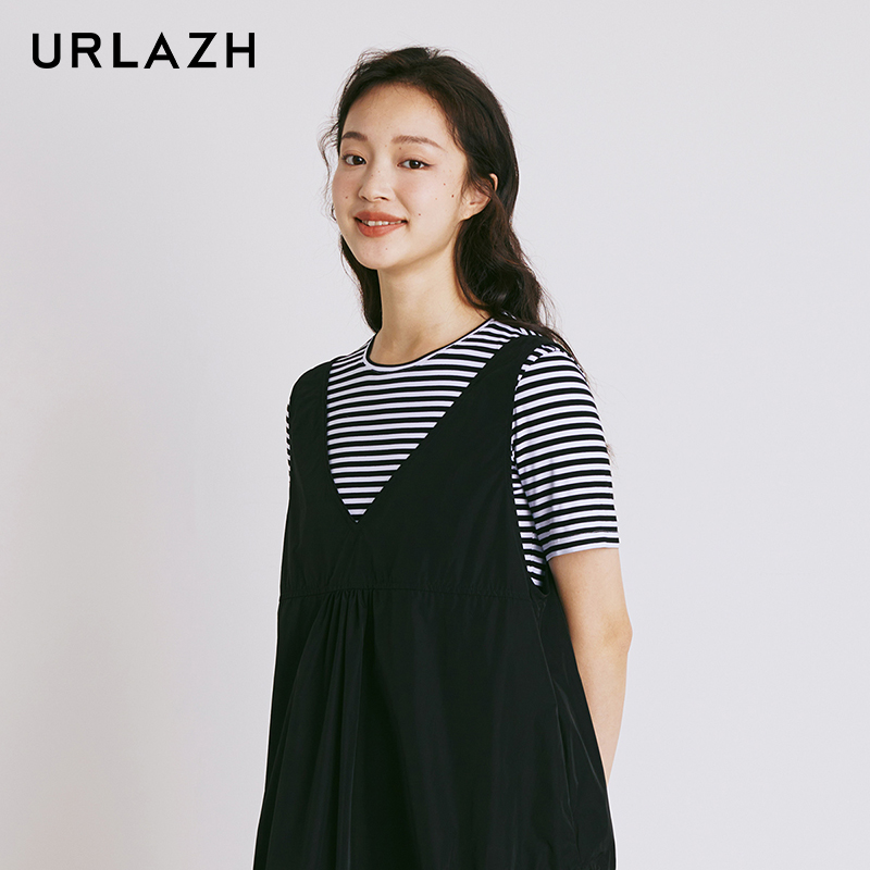 热风T恤连衣裙2025年女装 内搭打底裙子秋 连衣裙圆领长裙条纹短袖