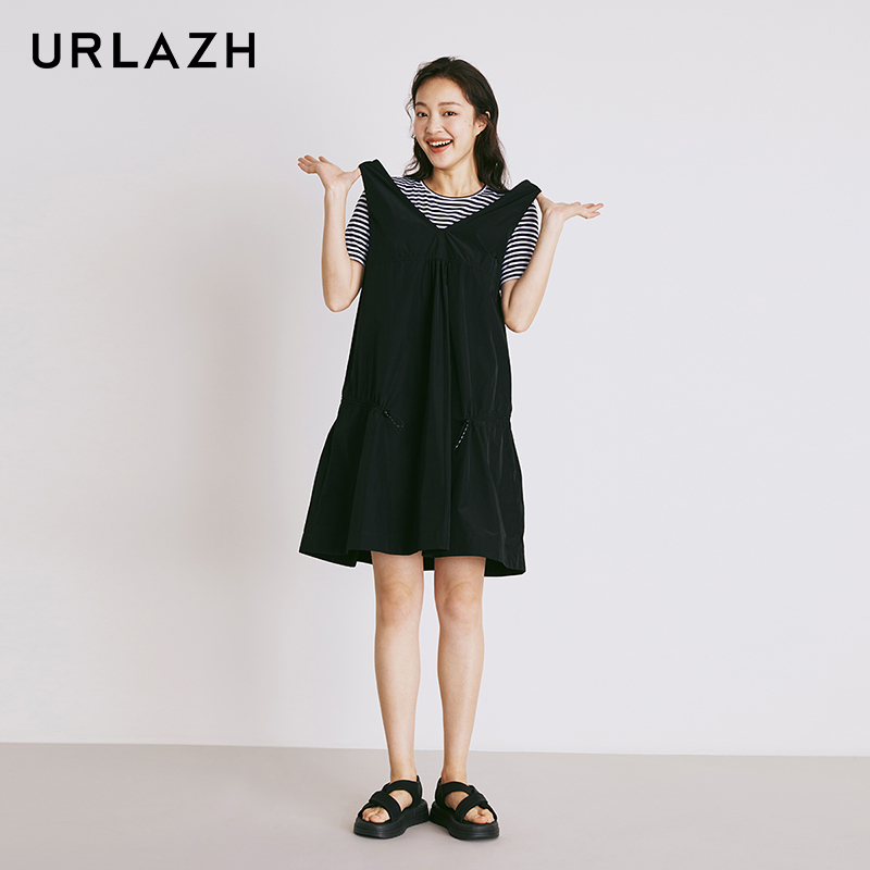 设计感小众假两件v领斜肩长袖 高腰显瘦通勤a字短裙子 连衣裙女秋装