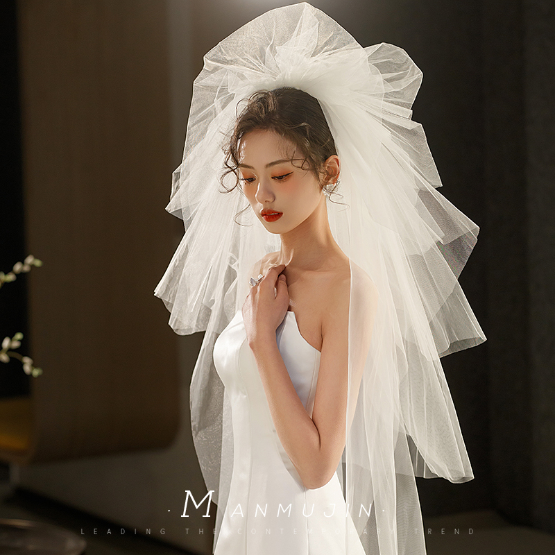 新娘结婚旅拍照头纱影楼化妆师跟妆造型韩国纱多层硬网抓泡蓬蓬纱