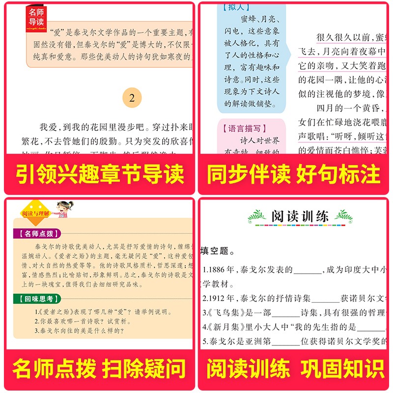 儿童文 社青少年无障碍阅读名著世界经典 泰戈尔诗选正版 书新月集飞鸟集园丁集小学生三四五六年级课外书籍山东美术出版