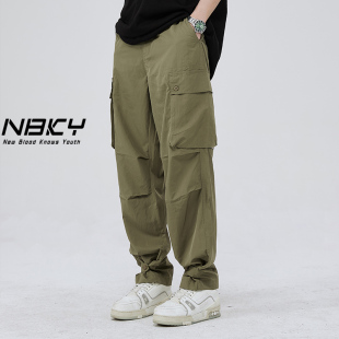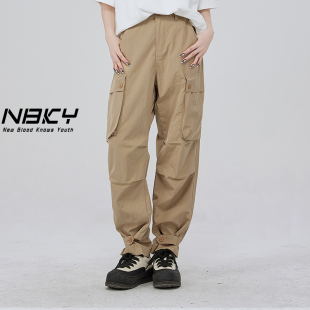 工装 新品 超薄速干长裤 情侣款 NBKY复古多口袋褶皱休闲裤 直筒裤 夏季