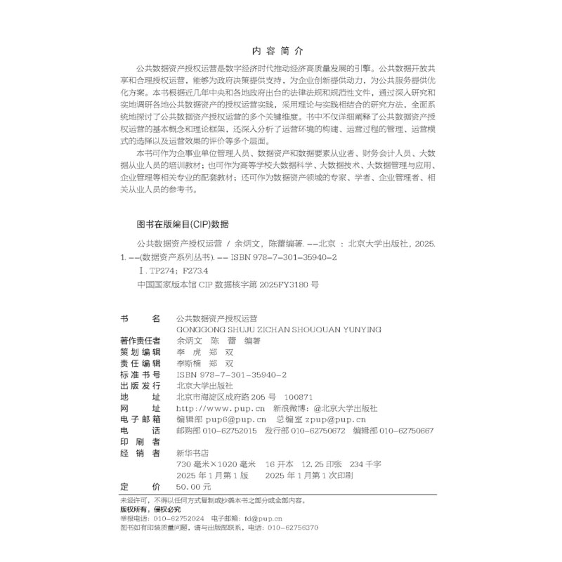 余炳文 公共数据资产授权运营 陈蕾 数据资产系列丛书 社9787301359402 正版 北京大学出版 2025新书