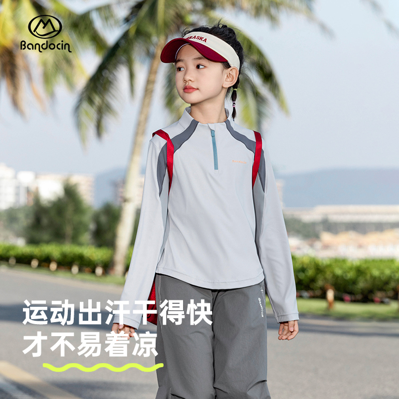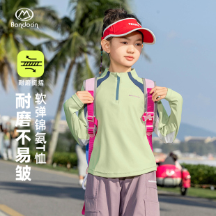 长袖 半度闲女童立领运动打底衫 儿童春秋款 2025新款 t恤潮 洋气秋装