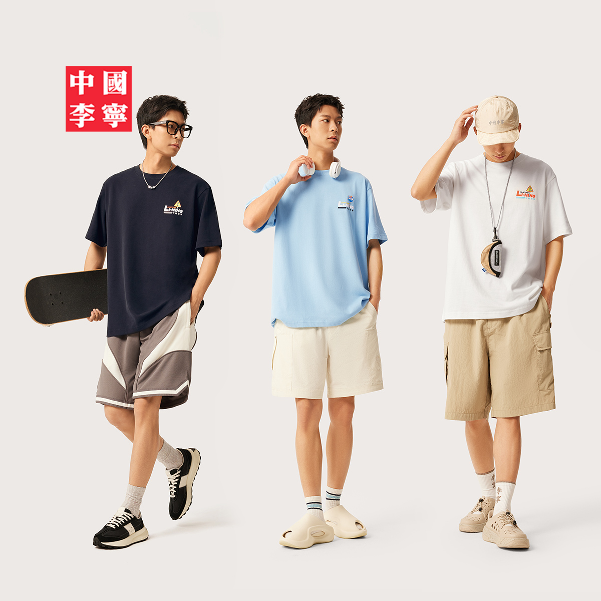 印花休闲宽松运动短袖 中国李宁T恤男士 上衣夏季 情侣款 女 2025新款