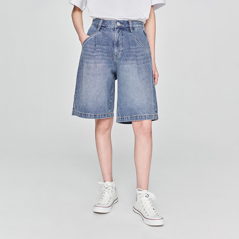高腰宽松休闲a字显瘦阔腿热裤 2025年新款 梨型黑色 女夏季 牛仔短裤