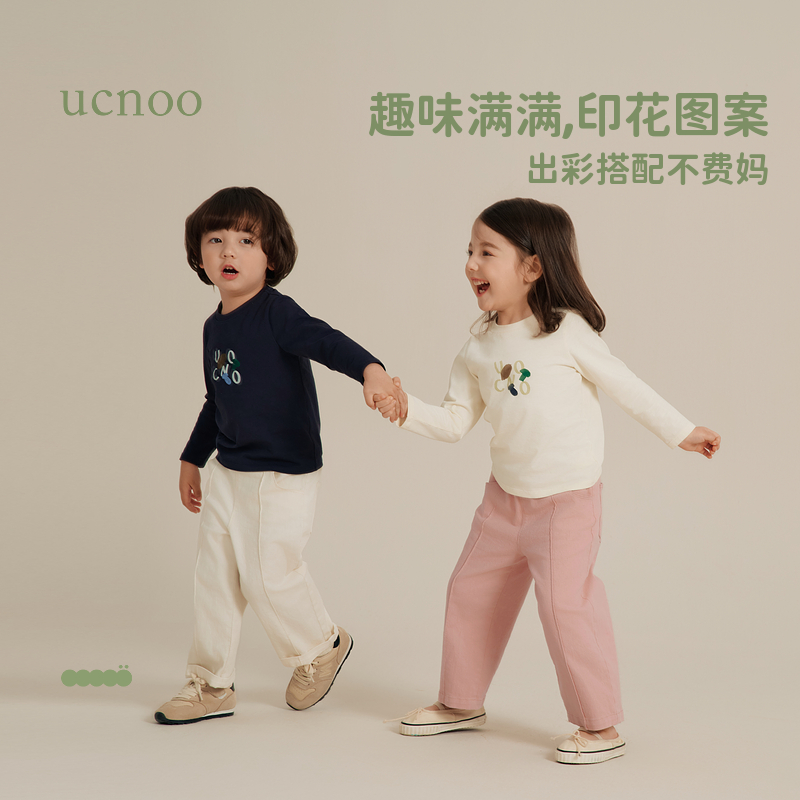 纯棉上衣内搭 男女童长袖 UCNOO与虫儿童T恤2025春夏新款 宝宝打底衫