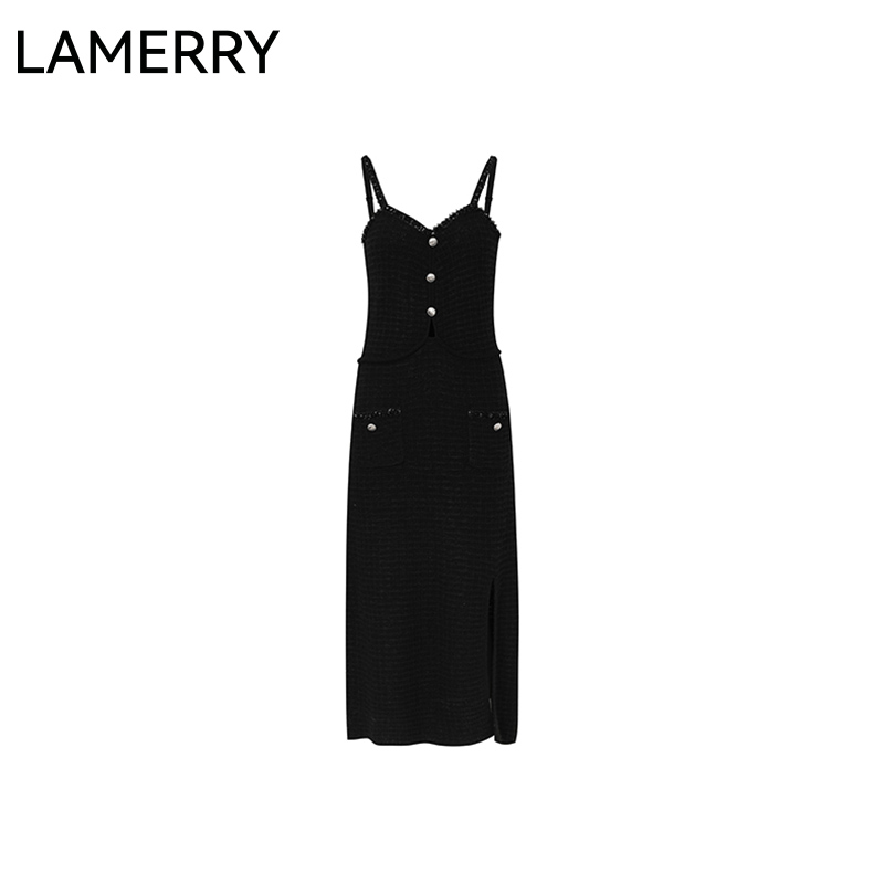 2025春夏新款 LAMERRY 朗美睿纯色小香风开叉吊带针织连衣裙女时尚