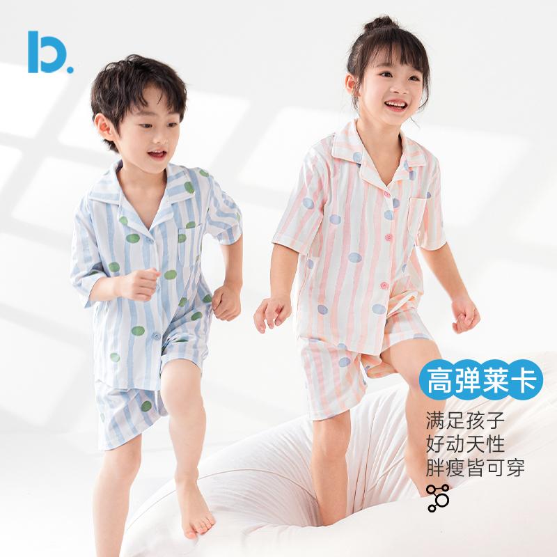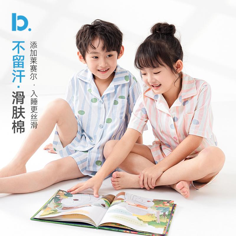 男女童莱赛尔纯棉开衫 睡衣夏季 儿童短袖 家居服套装 柔软不留汗