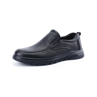 父亲中年爸爸鞋 男士 子软底一脚蹬 真皮商务休闲透气皮鞋 意尔康男鞋
