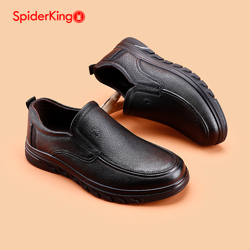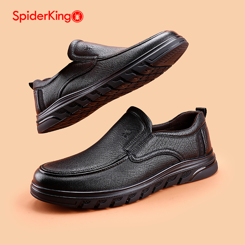 头层牛皮一脚蹬厚底商务休闲中老年爸爸男鞋 老人头皮鞋 男真皮秋季