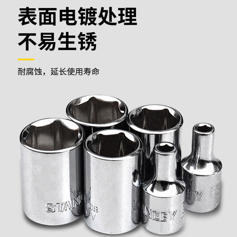 史丹利套筒六角套筒头薄壁中飞汽修棘轮扳手工具套头配件3 8寸10