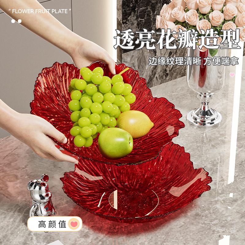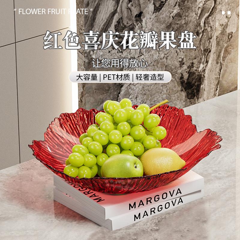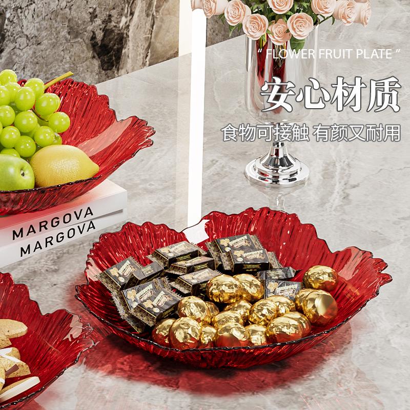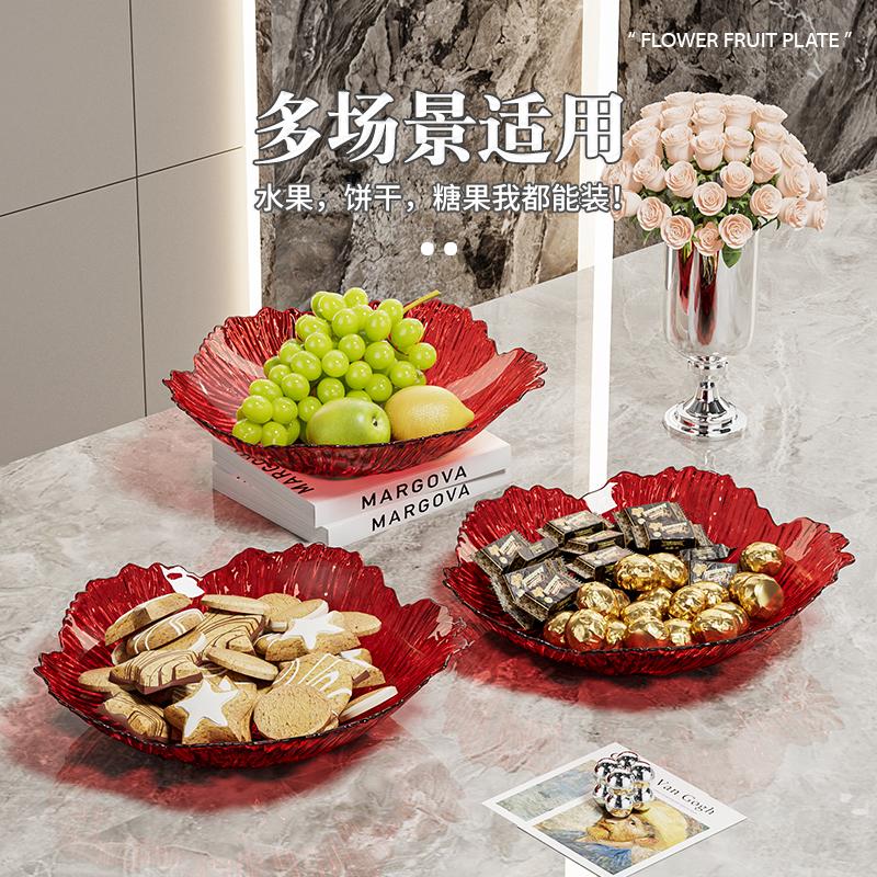 水果盘家用客厅茶几2025新款 红色喜庆轻奢风干果零食糖果摆放盘子