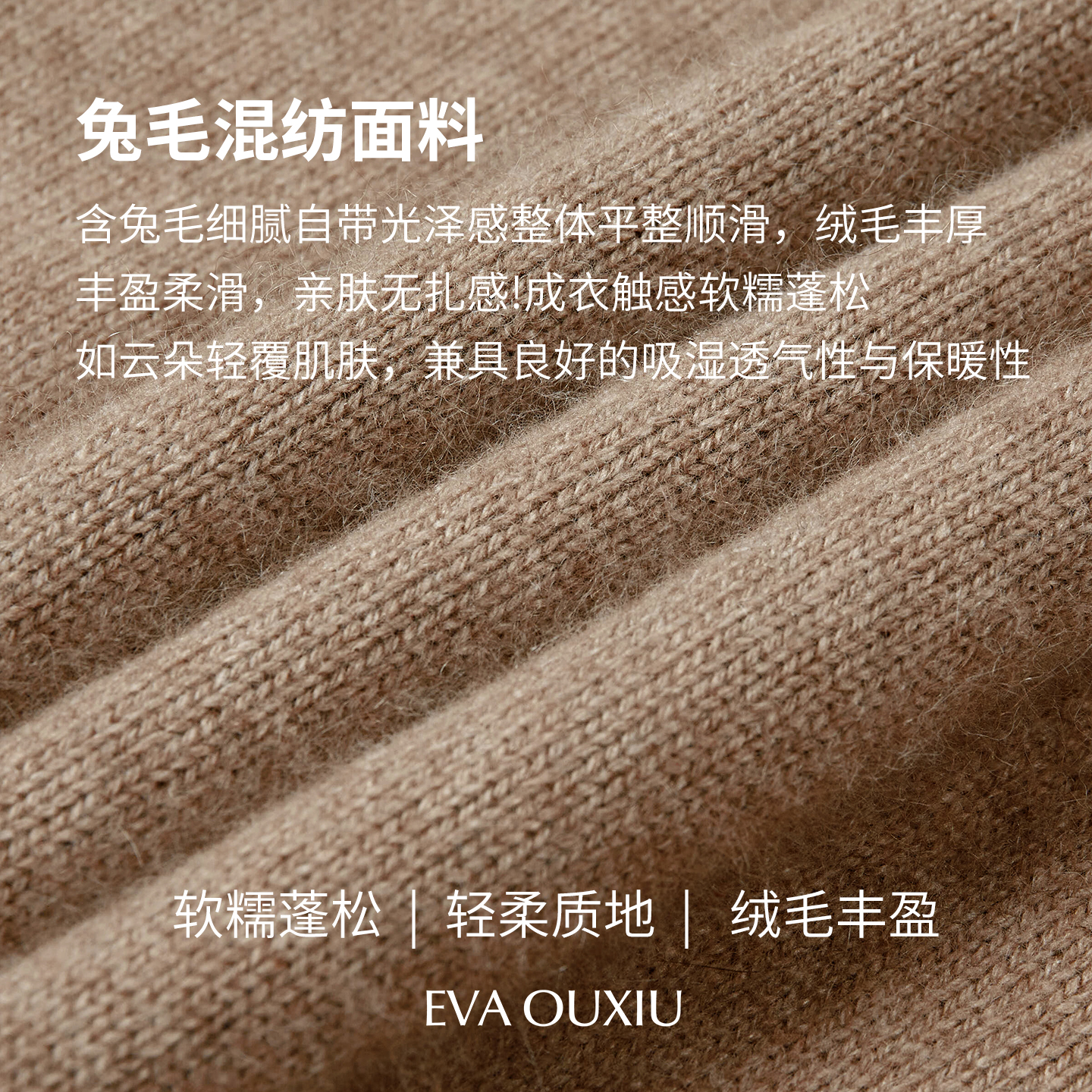 EVAOUXIU新松弛感廓形兔毛毛衣25春秋时髦圆领纯色针织衫 上衣女