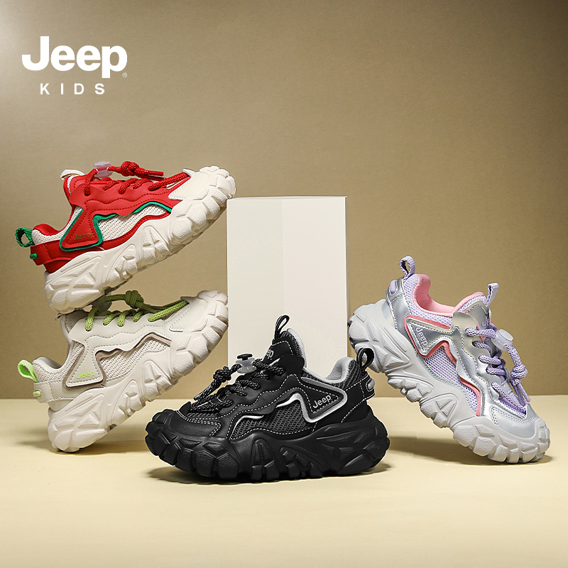 男童女童轻便运动鞋 jeep童鞋 春季 2025新款 儿童春秋透气软底跑步鞋