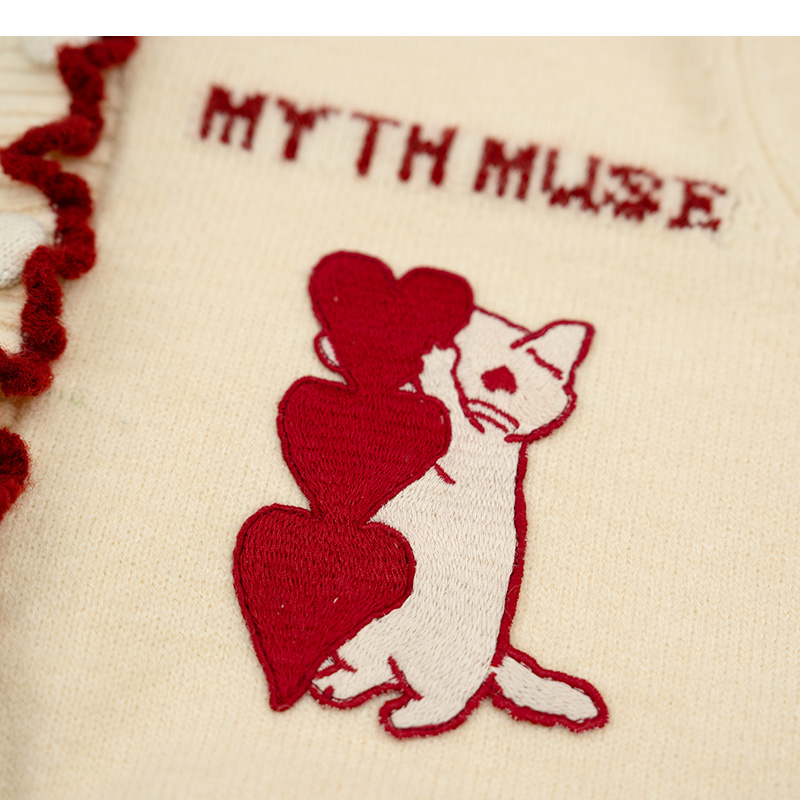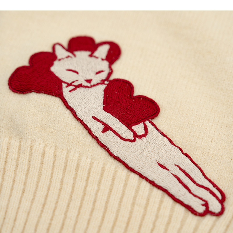 落肩圆领绵羊毛针织衫 GUUKA&matsui联名小狗提花情侣毛衣男款 冬季