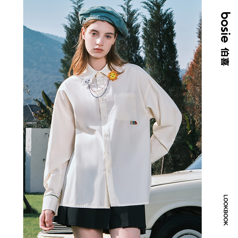 衬衫 太阳云朵可拆卸挂件长袖 男情侣百搭休闲 新款 bosie2025年春季