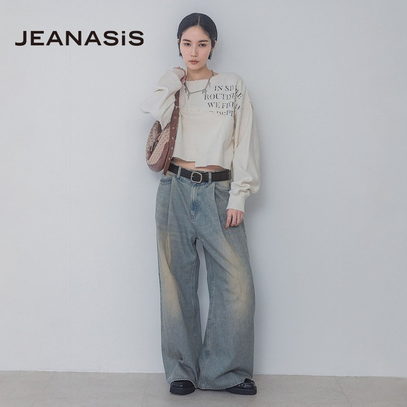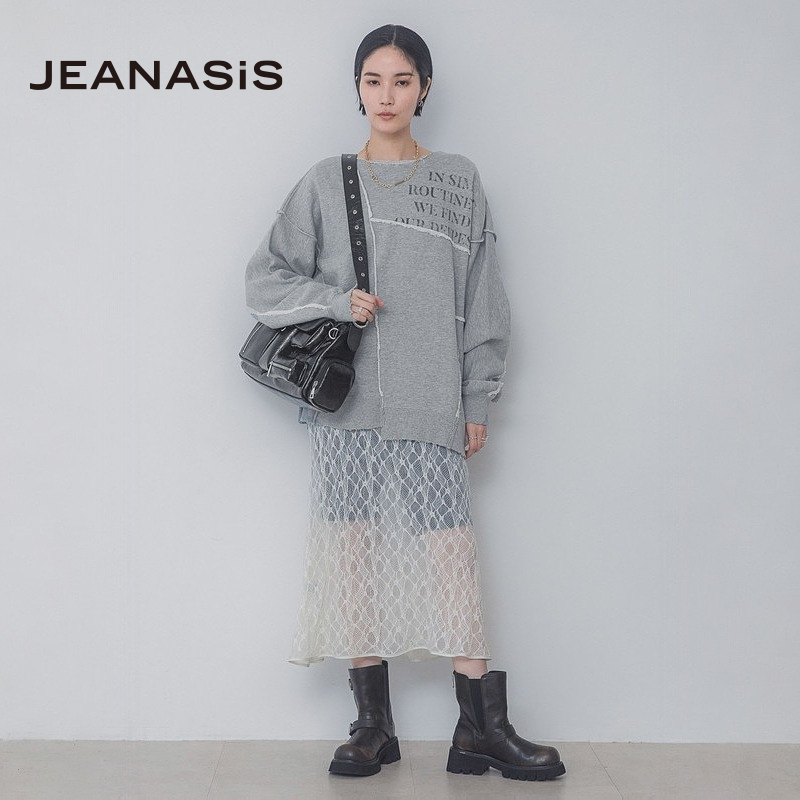 拼接字母流行长袖 时尚 上衣320060 T恤女2025年春秋新款 JEANASIS