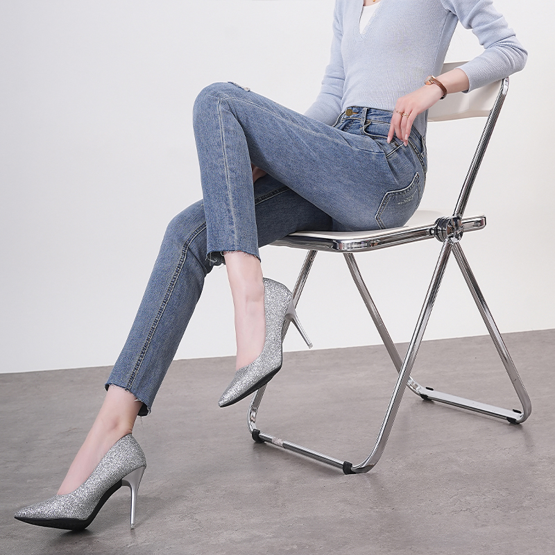 女浅蓝2025春款 白鹿语小个子高腰显瘦破洞九分烟管直筒韩版 牛仔裤