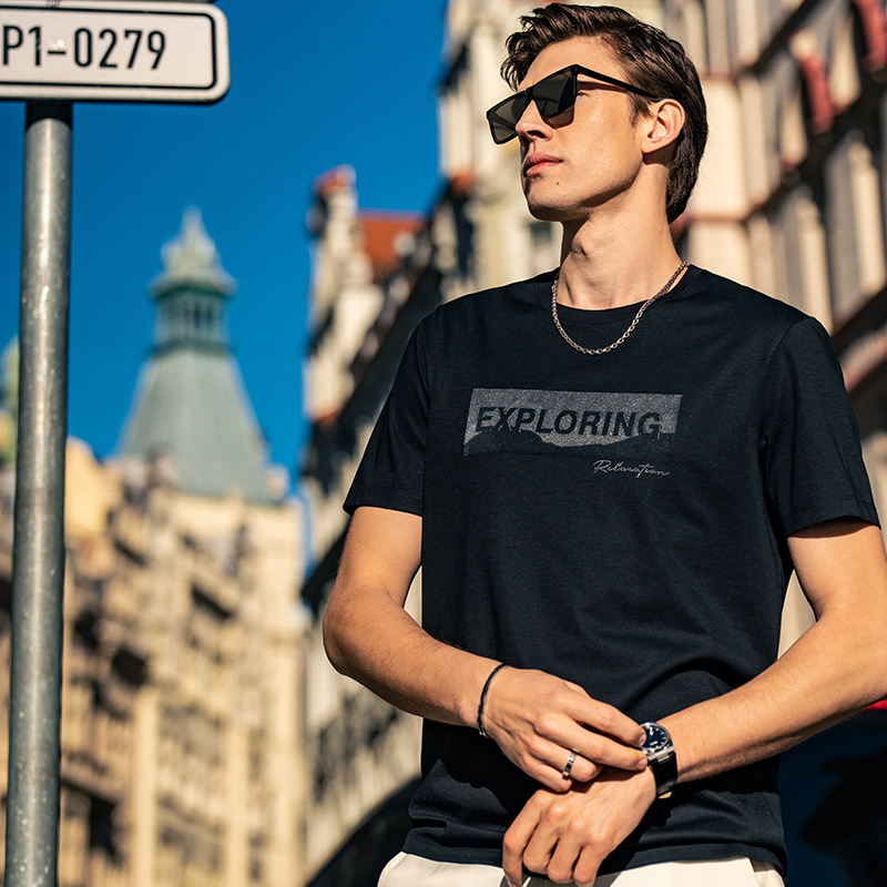 布先生轻奢立体字母印花黑色短袖 玉蝉丝凉感圆领ET15173 t恤男夏季